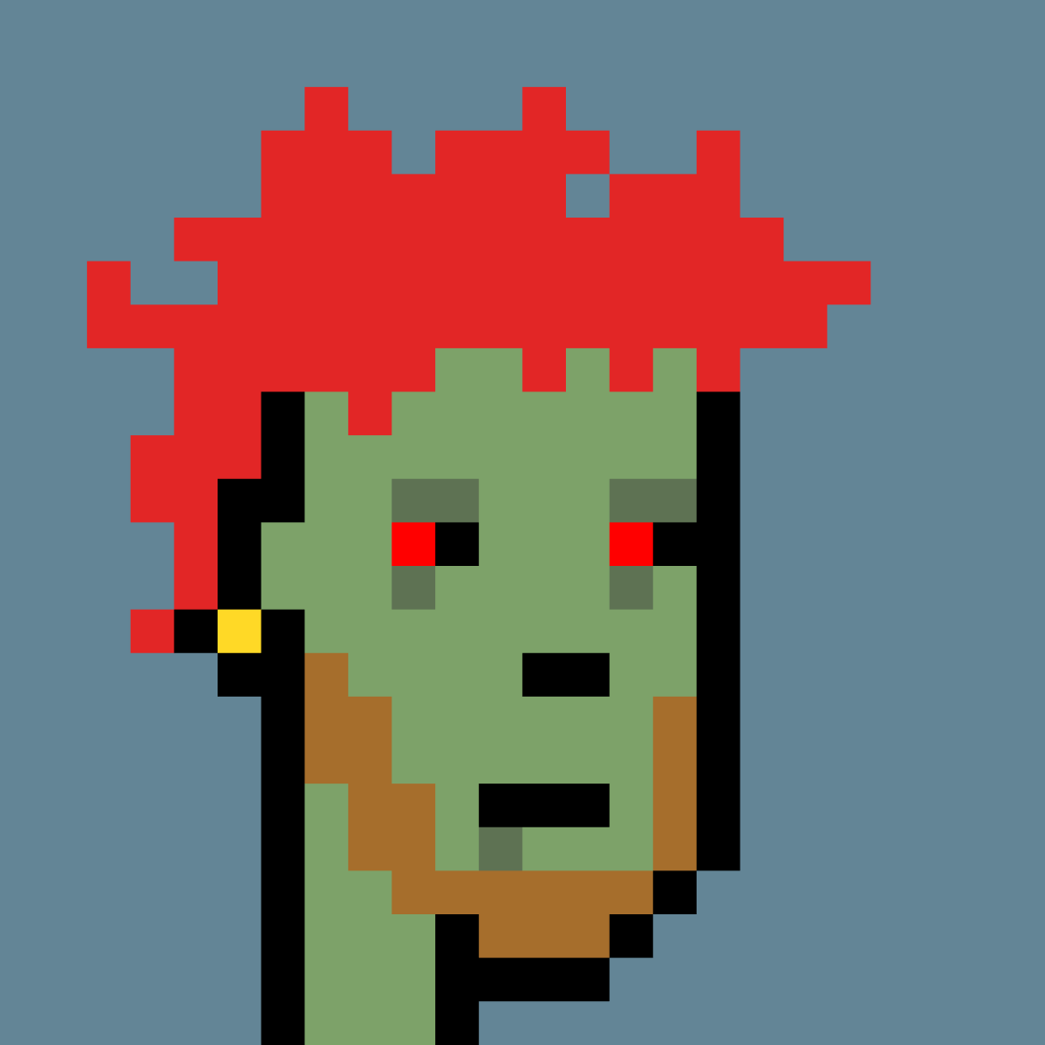 The CryptoPunks are 24x24 pixel art images, generated algorithmically. Most are punky-looking guys and girls, but there are a few rarer types mixed in: Apes, Zombies and even the odd Alien. Every punk has their own profile page that shows their attributes as well as their ownership/for-sale status.